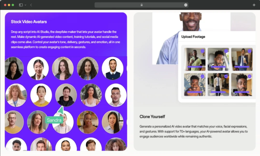 人工智能会分析你的面部表情、手势和声音,创建一个与你外观和声音完全一致的自定义头像。你还可以创建动漫风格的头像、会说话的动物头像等等。