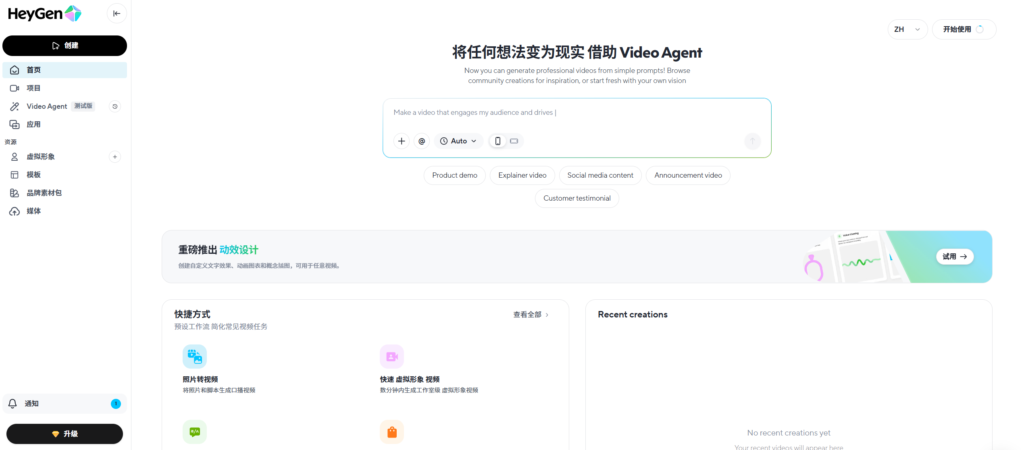 设置为简体中文后后台操作台就是中文了,heygen注册就那么简单